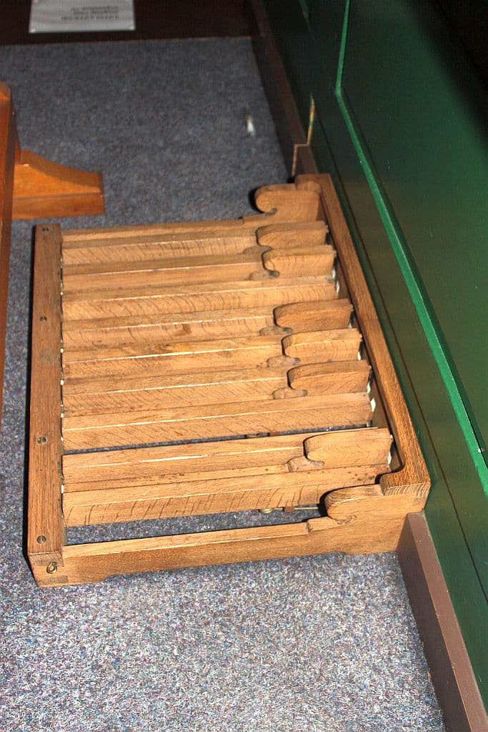 - De toonhoogte is a’ = 443 Hz. De stemmingstemperatuur is evenredig zwevend en de winddruk is 73 mm