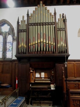 Great: C – g3 Open Diapason 8′, Hohl Flote 8′, Dulciana 8′, Principal 4′, Harmonic Flute 4′.