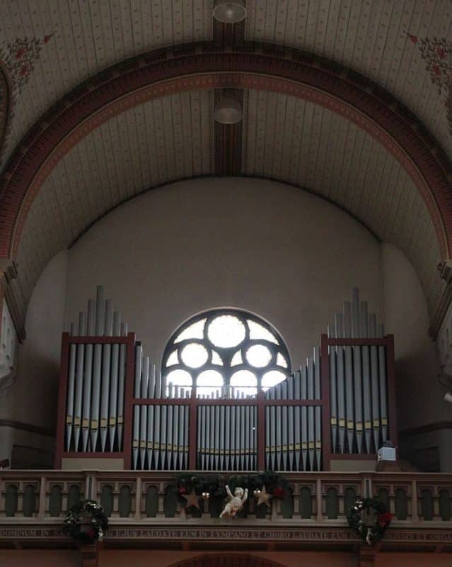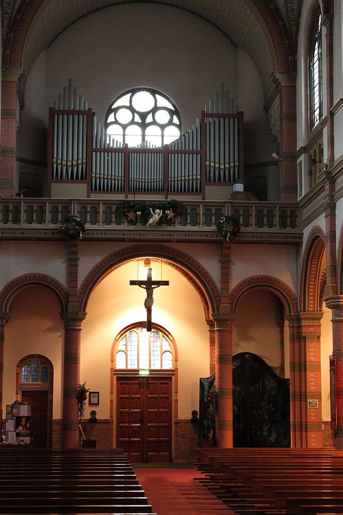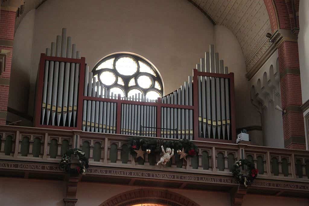 Couplers: Manuaal I – Manuaal II, Manuaal I – Manuaal II 16′, Pedaal – Manuaal I, Pedaal – Manuaal II, Manuaal I – Manuaal I 4′, Manuaal II – Manuaal II 16′.