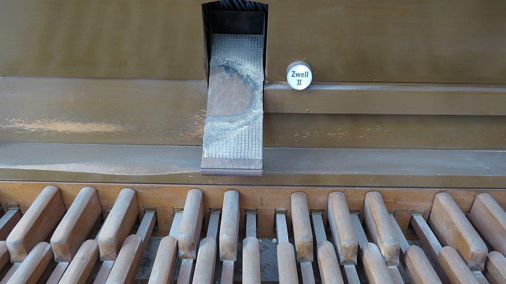 Manuaal II (in zwelkast): C – f3 Vioolprestant 8′, Roerfluit 8′, Gemshoorn 4′, Woudfluit 2′, Hobo 8′.
