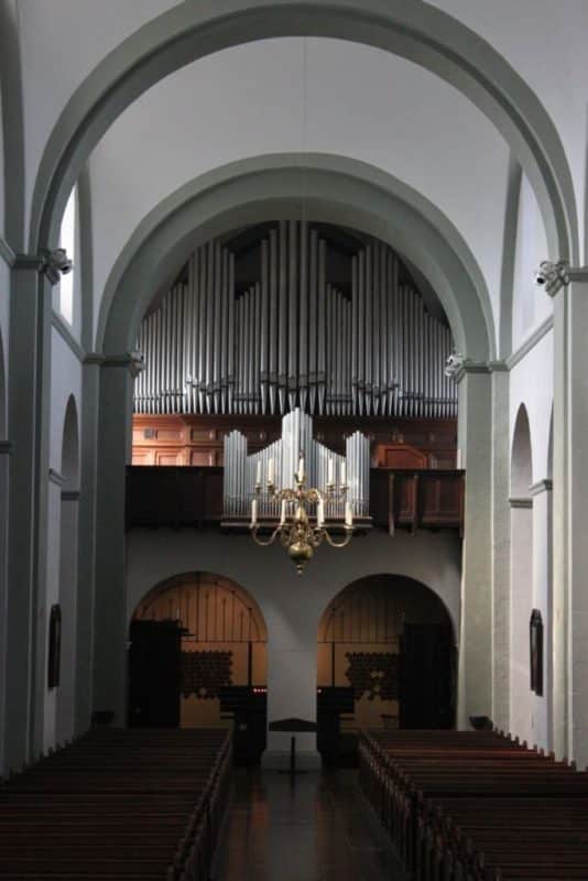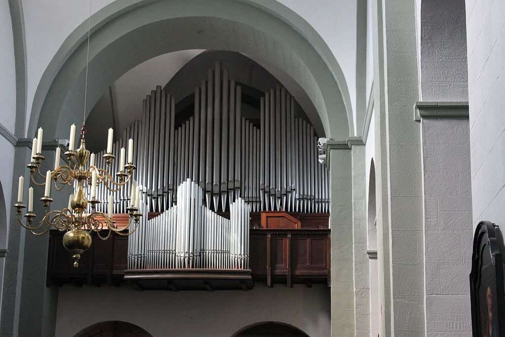 Couplers: Hoofdwerk – Positief, Hoofdwerk – Zwelwerk, Hoofdwerk – Zwelwerk 16′, Hoofdwerk – Zwelwerk 4′, Positief – Zwelwerk, Pedaal – Hoofdwerk, Pedaal – Positief, Pedaal – Zwelwerk, Pedaal – Zwelwerk 4′.
