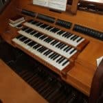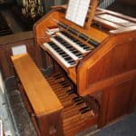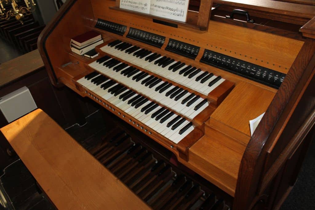 Accessories: Tremolo, 6 vaste combinaties, 1 vrije combinatie, 1 deelbare combinatie, Automatisch pianopedaal vast, Automatisch pianopedaal vrij, Tongwerken af (groep), Tongwerken af (apart), Generaal Crescendo.