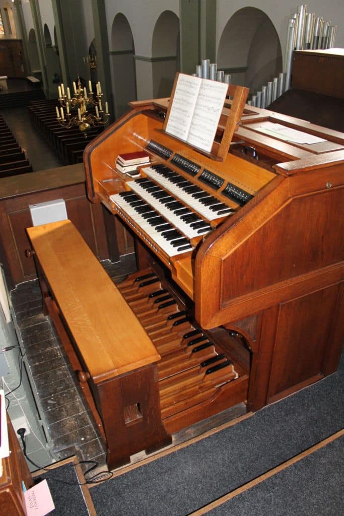 Zwelwerk: C – g3 Prestant 8′, Overblazende Fluit 8′, Gamba 8′, Zweving 8′, Holpijp 8′, Octaaf 4′, Fluit 4′, Kwint 2 2/3′, Piccolo 2′, Terts 1 3/5′, Mixtuur III-IV sterk (1′), Terts-Cimbel II-III sterk (2/3′), Dulciaan 16′, Trompet 8′, Schalmei 4′.