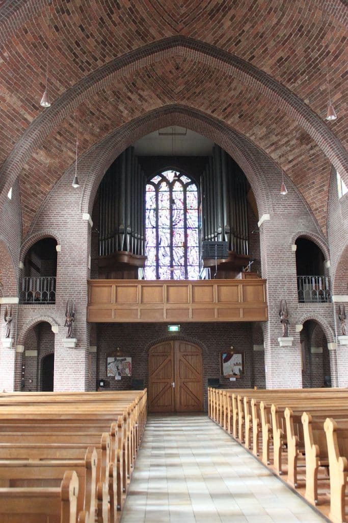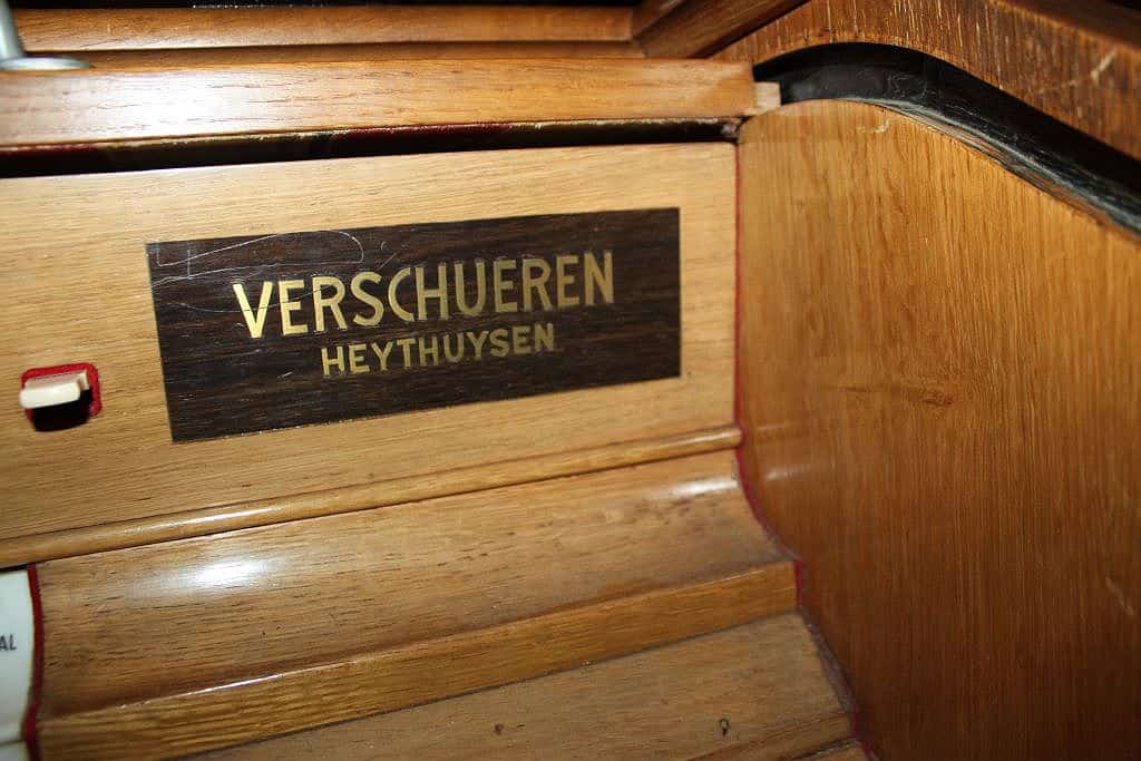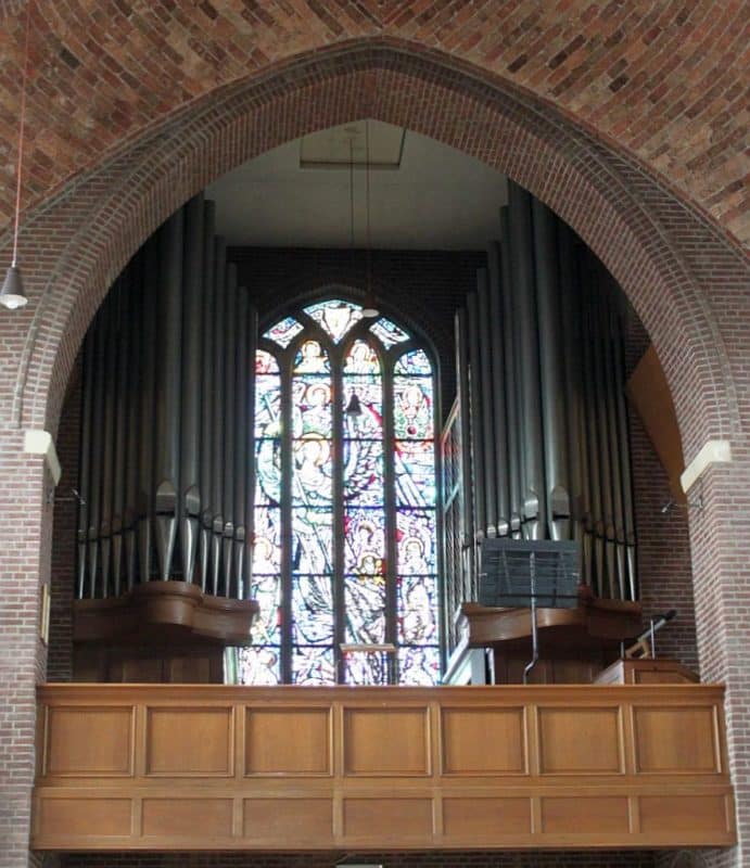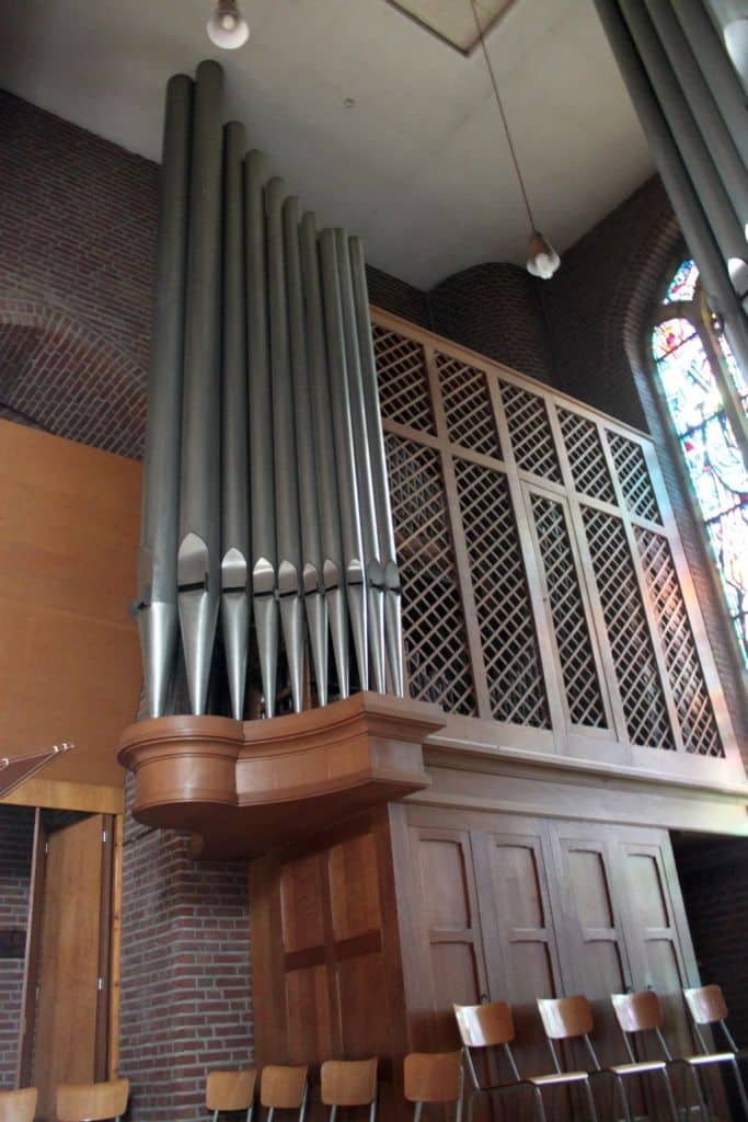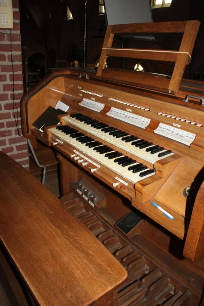 Couplers: Manuaal I – Manuaal II, Manuaal I – Manuaal II 16′, Manuaal I – Manuaal II 4′, Pedaal – Manuaal I, Pedaal – Manuaal II, Pedaal – Manuaal II 4′.
