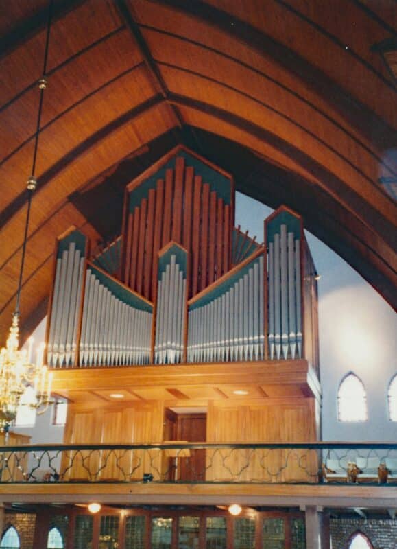 Pedaal: C – f1 Prestant 16′, Subbas 16′, Zachtgedekt 16′, Resultant 10 2/3′, Octaaf 8′, Gedekt 8′, Koraalbas 4′, Bazuin 16′, Trombone 8′.