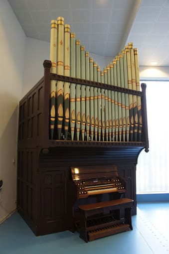 Het orgel is gebouwd door William Hill (London) in 1875.Het is gebouwd voor de Ryecroft Methodist Church in Gloucester (Engeland), daarna geplaatst in de Eastington Methodist Church in dezelfde plaats en als laatste in de St. Barnabas Church, ook in Gloucester.In 2004 is het aangekocht door de gebr. v.d. Heuvel, orgelbouwers in Dordrecht. Deze hebben het orgel, wat in erbarmelijke staat verkeerde, geheel gerestaureerd en in de staat van 1875 teruggebracht. In 2013 is het orgel gekocht door de Regenboogkerk te Hilversum. In augustus 2024 is de kerk gesloten. Het is niet bekend wat er met het gebouw en de orgels gaat gebeuren.