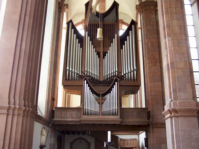 Schwellwerk: (C-a3) Gedackt Pommer 16 Holzflöte 8 Viola di Gamba 8 Schwebung 8 (D) Principal 4 Koppelflöte 4 Rohrnasard 2 2/3 Flachflöte 2 Scharf 4 fach (1′) Noncymbel 4 fach (2/7′) Schalmey-Oboe 8 Clarion 4 Tremulant |