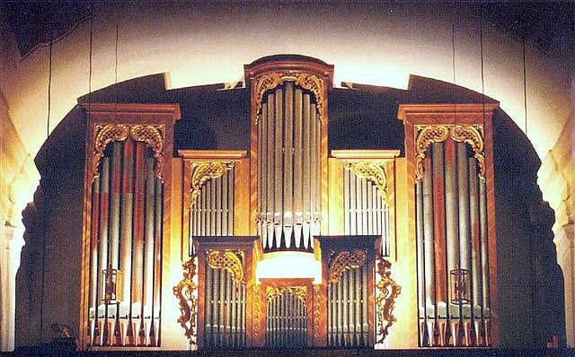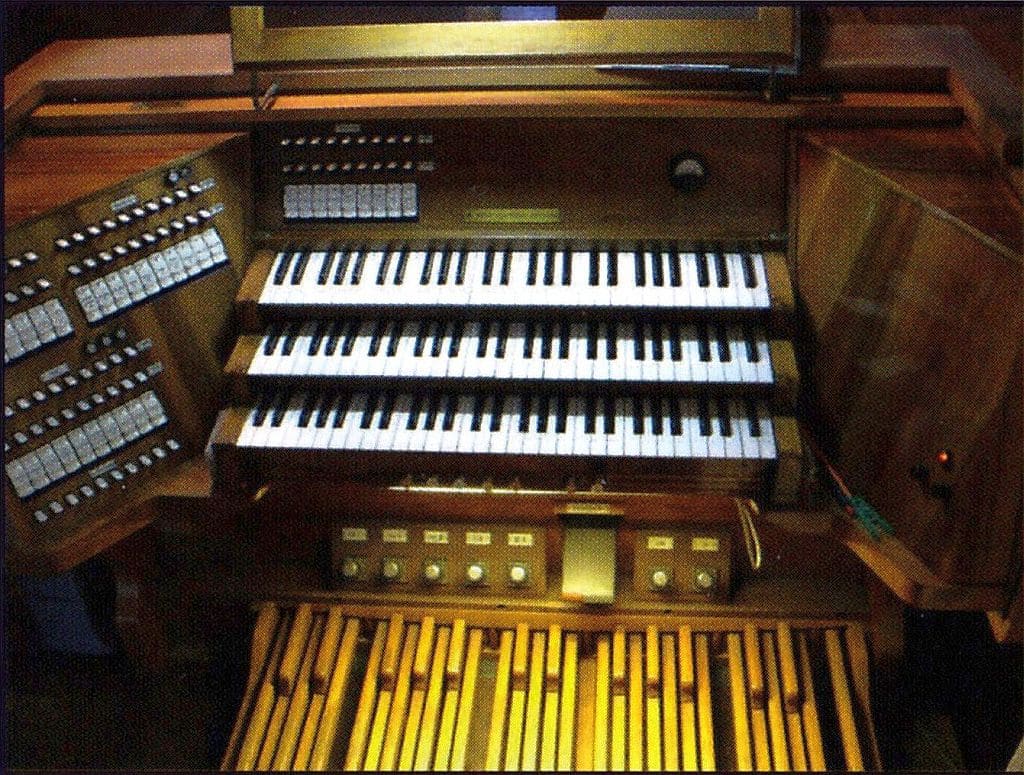 SCHWELLWERK (C – g3) 56 TOETSEN: Rohrgedackt 8′, Salicional 8′, Offenflöte 4′, Prästant 4′, Gemshörnlein 2′, Sesquialter 2 fach (2 2/3′), Spanischer Hirtensatz 5 fach, Oboe 8′, Tremulant.