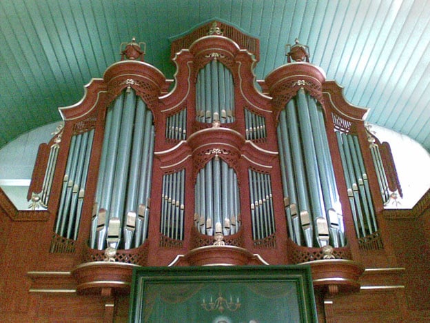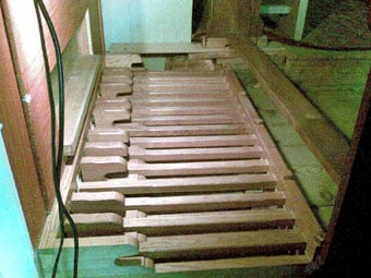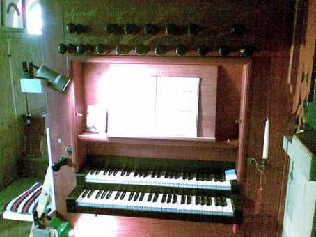 2. Oberwerk: (C-f3) Flaut travers 8 Viola di Gamba 8 (D) Prinzipal 4 Flaut douce 4 Waldflöte 2 TremulantPedal: (C-c1), angehängt Manualkoppel |