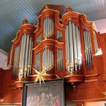 | 1. Hauptwerk: (C-f3) Bordun 16 Prinzipal 8 Gedackt 8 Oktave 4 Rohrflöte 4 Nasat 3 Oktave 2 Mixtur 4f Trompete 8 |