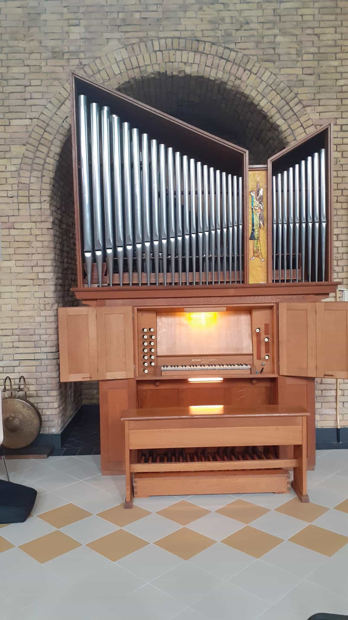 Het instrument is door Pels en Van Leeuwen in deze kerk geplaatst en herbergt een kleine 800 orgelpijpen, verdeeld over negen registers, waarvan één in het pedaal. Het past wonderwel op de plaats waar het vorige orgel heeft gestaan. De bazuin blazende engel past prachtig bij het kleurenschema dat ontworpen is voor de nieuwe glas-in-loodramen.