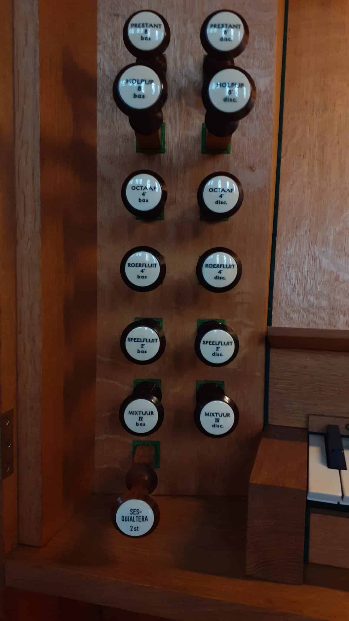 MANUAAL: C – g3 (56 TOETSEN) Prestant 8′, Octaaf 4′, Fluit 8′, Fluit 4′, Octaaf 2′, Mixtuur, Sesquialter