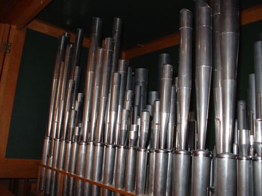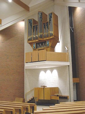 Fama & Raadgever, 1975 voor de Geref. kerk te De Meern, waar firmant Piet Raadgever zelf organist was. Overgeplaatst naar Houten door Ide Boogaard, 2002.