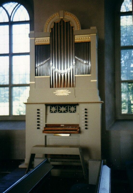 Manual I: C – f3 Flagflöjt 8′ (B/D), Salzinal 8′, Principal 4′, Rörflöjt 4′, Nasat 3′, Octava 2′, Scharff 2 chor.