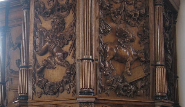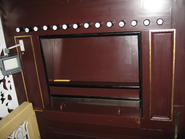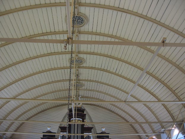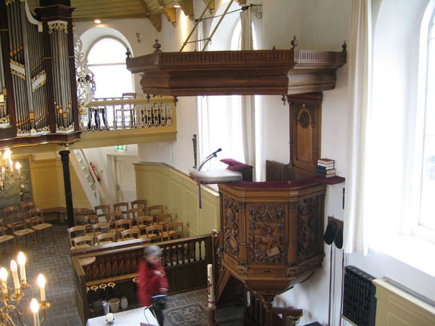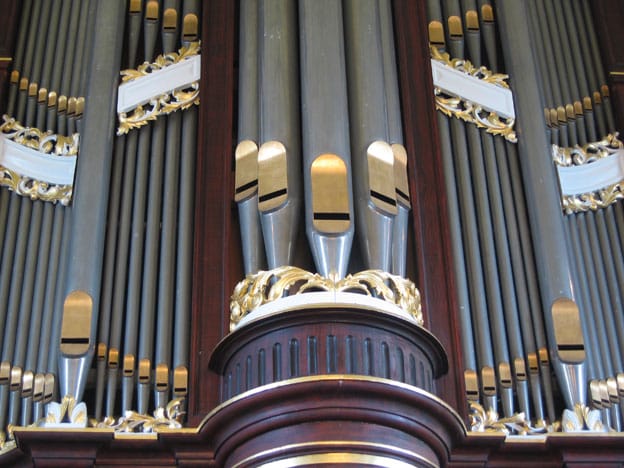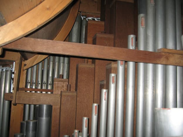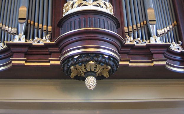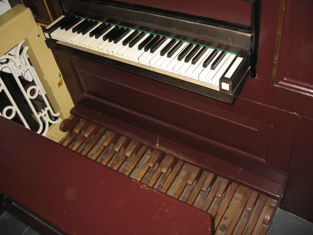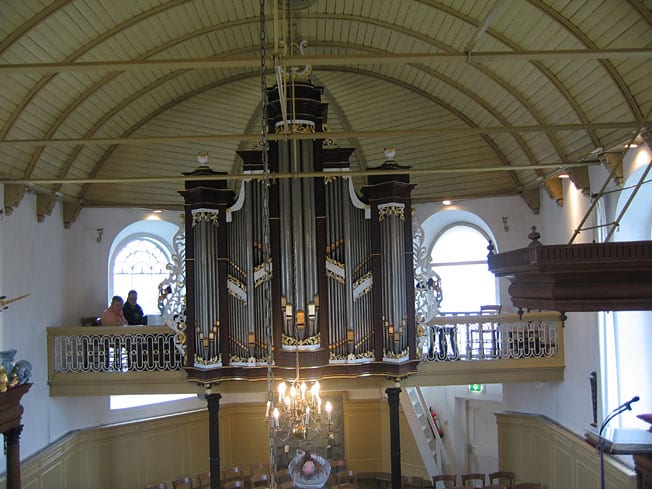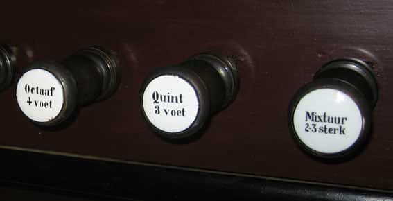 De dispositie van het Van Oeckelen-orgel: (1879; in 1981 verplaatst binnen het kerkgebouw)