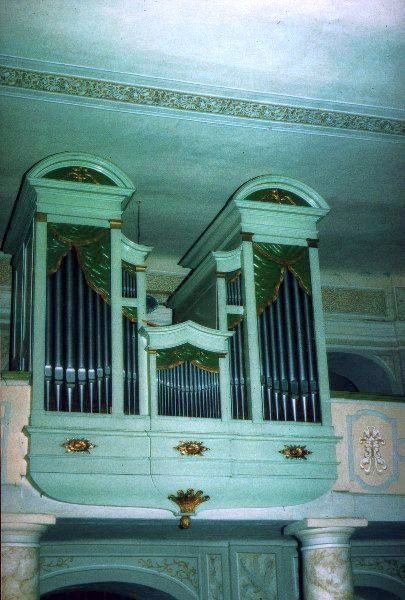 Manual: Principal 8′, Flöte 8′, Bourdon 8′, Oktave 4′, Gemshorn 4′, Salicional 4′, Quint 2 2/3′, Octave 2′, Mixtur.