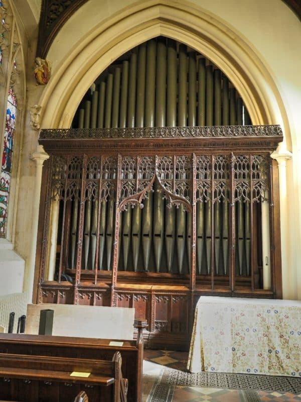 Swell: C – c4 (in zwelkast) Open Diapason 8′, Lieblich Gedackt 8′, Viola da Gamba 8′, Voix Celestes 8′ TC, Fugara 4′, Rohr Flote 4′, Flageolet 2′, Mixture IV (19.22.26.29), Contra Oboe 16′, Oboe 8′ (extension – 1997), Vox Humana 8′ (in 1997 geplaatst met gebruikmaking van pijpwerk van Binns), Trumpet 8′, Clarion 4′, Tremolo.