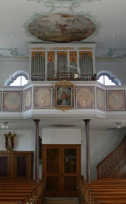 I. MANUAL: C – f3 (54 TOETSEN) Prinzipal 8′, Gemshorn 8′ – 1942, Oktave 4′, Rohrflöte 4′, Mixtur 3 fach (2′).