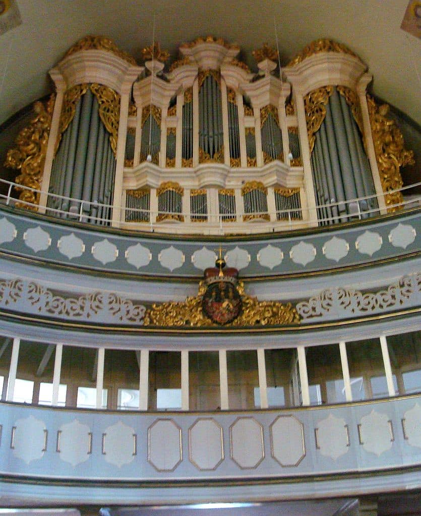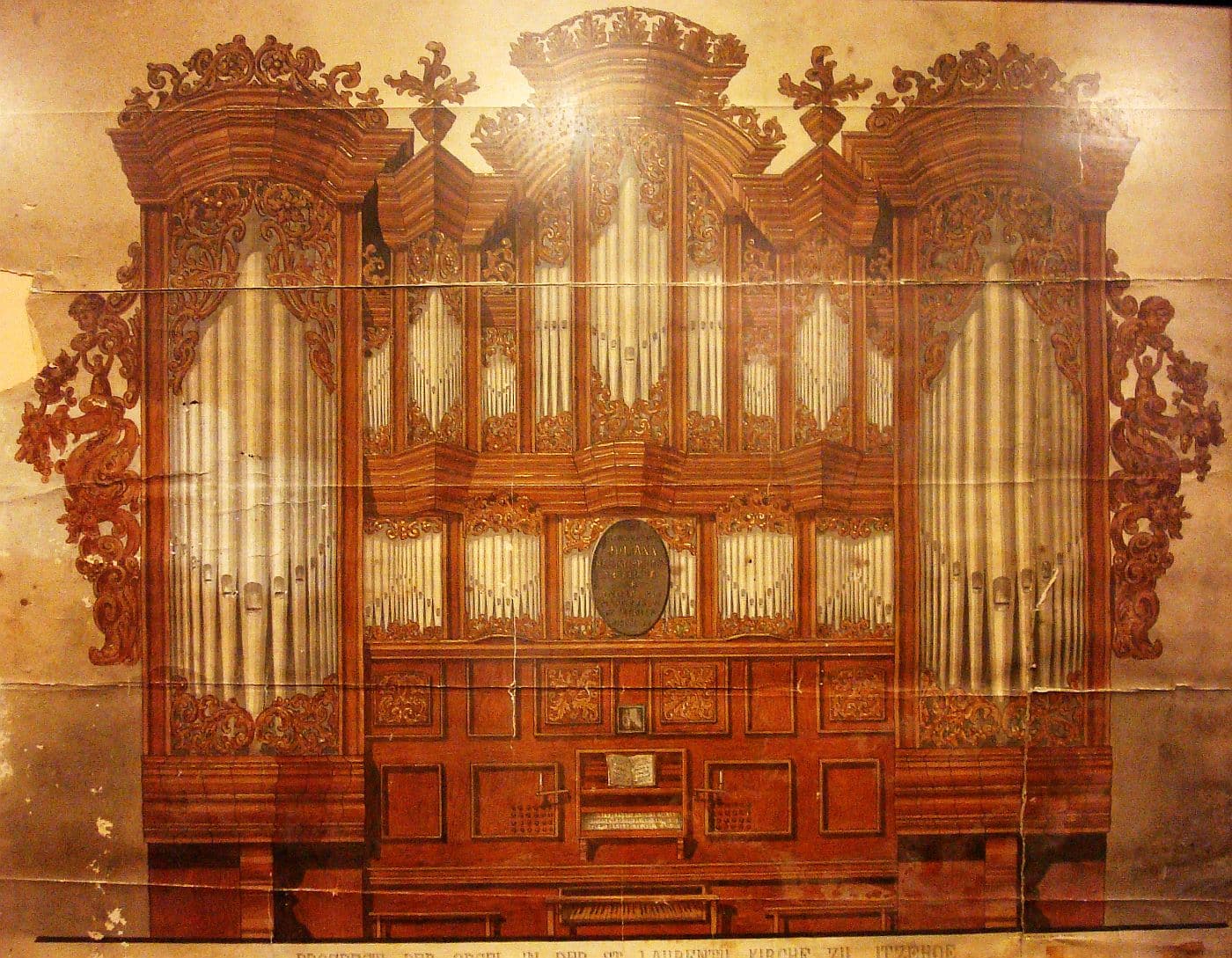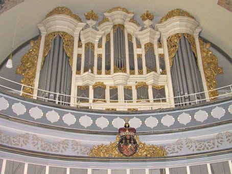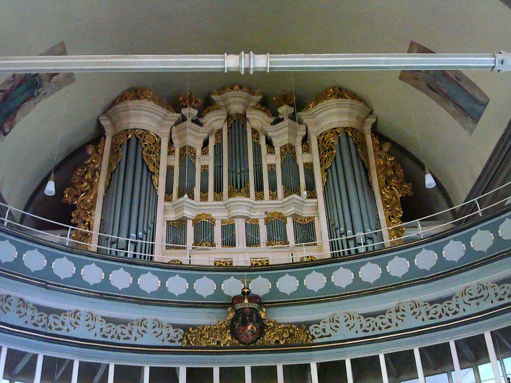 Die Disposition der Orgel: (ursprünglich 1719 Schnitger, ab 1905 Sauer in altem Gehäuse; später Umdisponierungen und Ausbau)