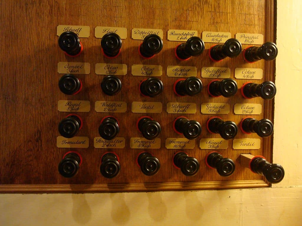 | 4.Manual Bombarde 16′ Schweizer Trompete 8′ Hautbois 8′ Cornett 5fach8′ Clarion 4′ |