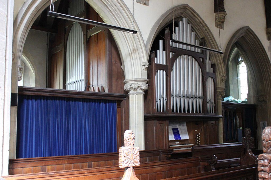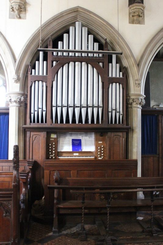 Great Organ: C – g3 Open Diapason 8′, St Bass & Clarabella Treb 8′, Gamba 8′, Dulciana 8′, Principal 4′, Harmonic Flute 4′, Fifteenth 2′, Mixture 2 ranks, Clarionet 8′ (TC).