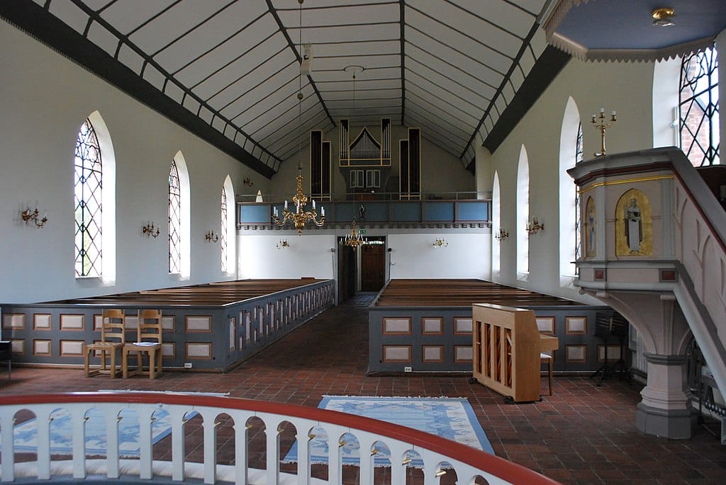 HUVUDVERK: Gedackt 8′, Principal 4′, Waldflöjt 2′, Mixtur 2-3 chor.