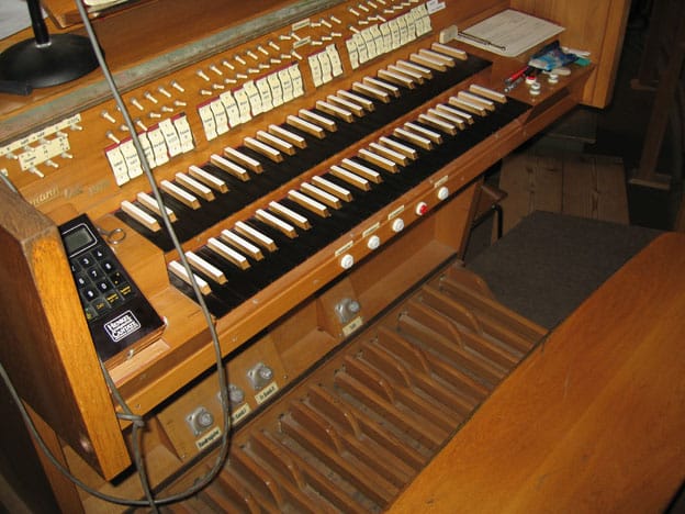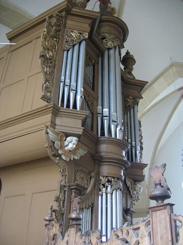 | Hauptwerk: (C-g3) Pommer 16 Prinzipal 8 Rohrflöte 8 Oktave 4 Gemshorn 4 Nasat 2 2/3 Oktave 2 Mixtur 5f 1 1/3′ Trompete 8 |