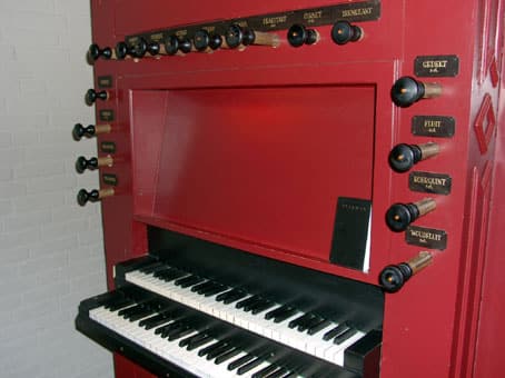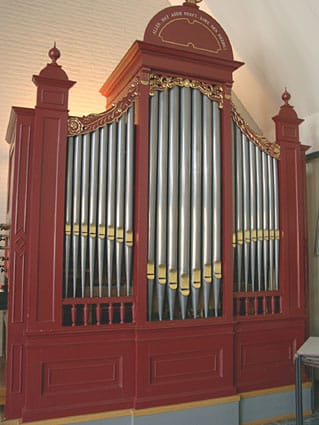 De dispositie van het door J. M. J. Stoker en Nicolaas Albertus van Dam gebouwde orgel: (1910; tot 1982 in Oosterhesselen, Hervormde Kerk, vanaf 1984 in Kampen)