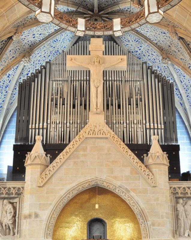 ECHOWERK (IV. MANUAL) (C-a3): 58 TOETSEN Salicet 16′, Geigenprincipal 8′, Lieblich Gedeckt 8′, Aeoline 8′, Vox Coelestis 8′, Violine 4′, Fernflöte 4′, Vox Humana 8′, Rohrschalmey 8′.