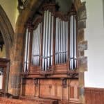 SWELL: C – g3 (56 TOETSEN) IN ZWELKAST Violin Diapason 8′, Lieblich Gedact 8′, Aeoline 8′, Unda Maris 8′, Gemshorn 4′, Flautina 2′, Horn 8′, Oboe 8′.