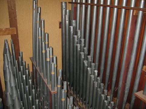 | Hoofdwerk: (C-g3) Praestant 16 D * Praestant 8 (innen) Roerfluit 8 Octaaf 4 Nachthoorn 2 ** Mixtuur 5-6 st. Trompet 8 |