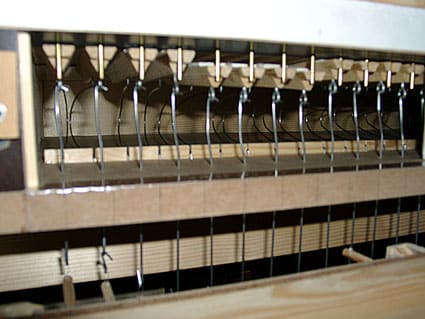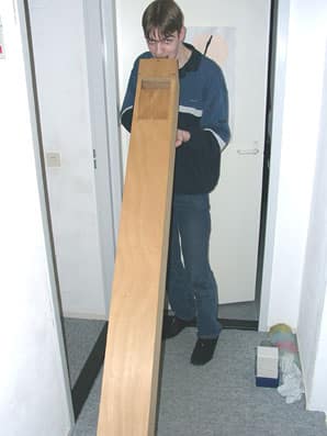De windlade, waarop uiteindelijk 5 registers op komen te staan: Gedekt 8, Prestant 4, Woudfluit 2 en Trompet 8