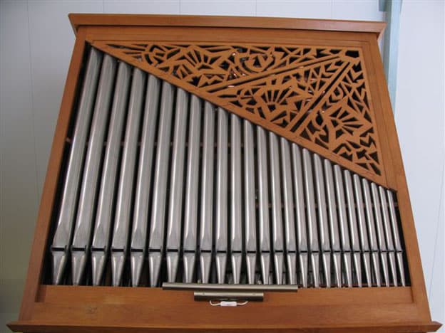 De dispositie van het Leeflang-orgel: (1965, Bevrijdingskerk Leiden; in 2009 naar Kootwijkerbroek overgeplaatst)