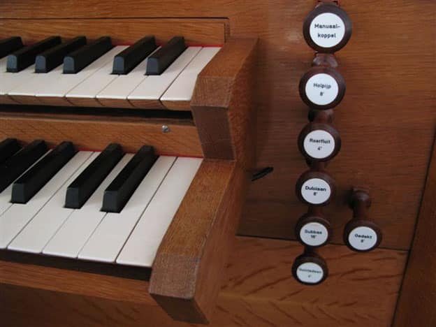 | Manuaal 1: (C-f3) Roerfluit 4 Octaaf 2 Dulciaan 8 |