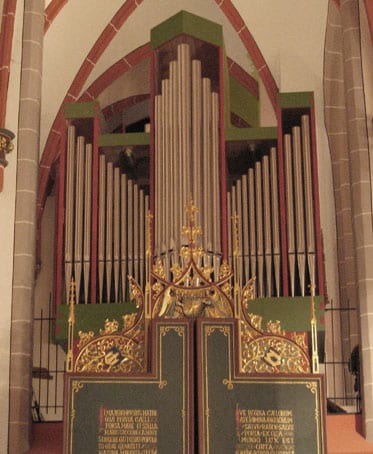 | Hauptwerk: (C-g3) Pommer 16 Prinzipal 8 Gemshorn 8 Oktave 4 Quintade 4 Nachthorn 2 Mixtur 5f Trompete 8 |