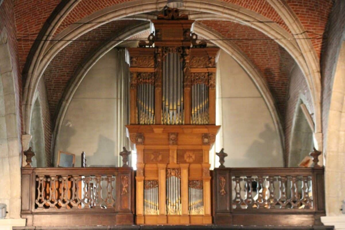Op 22 april 1672 werd voor notaris Laureins Verrooten in Gent een overeenkomst gesloten tussen enerzijds pastoor Joannes van Hecke en anderzijds Nicolaus Langhe (Nicolas Langlez), hurgelmaeckere van stijle woonende binnen deser stede, voor het bouwen van een orgel. Het orgel zou een één-klavierinstrument zijn met 10 registers : holpijp 8’, devantuere 4’, octaaf 2, furniture, cimbaal, fluit 4, quintfluit, flageolet, cornet en trompet 8’. Merken we op dat de orgelbouwer de overeenkomst tekende N. Lenglet, een naam die door hem zelf op verschillende wijzen werd geschreven. Een eerste herstelling en wijziging werd reeds uitgevoerd door de Gentse orgelmaker Louis de la Haye waarbij een terts I 3/5 aan werd toegevoegd. Omstreeks 1777 was het orgel reeds in zo’n slechte staat dat het aan een grondige restauratie toe was. Het werk werd toevertrouwd aan Lambert Van Peteghem. In 1982 werd het orgel uiteindelijk gereconstrueerd en gerestaureerd met behoud van de waardevolle structuren van Lenglet en Van Peteghem door L. Verschueren uit Heythuijzen-Nederland. Vandaag bestaat het orgel uit twee klavieren : een bovenste klavier dat het groot orgel is en het onderste dat het positief is.