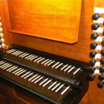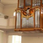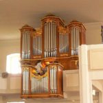 RÜCKPOSITIV: C – d3 (51 TOETSEN) Bourdon 8′, Flöt Travers 8′ (vanaf f°), Principal 4′, Floet 4′, Octav 2′, Quint 1 1/3′ – 1975, Sesquialter 1-2 fach – 1975, Mixtur 4 fach (1′) – 1975, Cromhorn 8′ – 1975, Tremulant Doux.