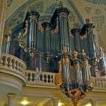 PÉDALE (C – g1) 32 TOETSEN: Soubasse 32′, Principal 16′, Flûte 16′, Soubasse 16′, Prestant 8′, Flûte 8′, Bourdon 8′, Tierce 6 2/5′, Prestant 4′, Flûte 4′, Septième 2 2/7′, Mixture 4 rangs (2 2/3′), Grand Cornet 2 rangs (5 1/3′), Bombarde 32′, Bombarde 16′, Douçaine 16′, Trompette 8′.