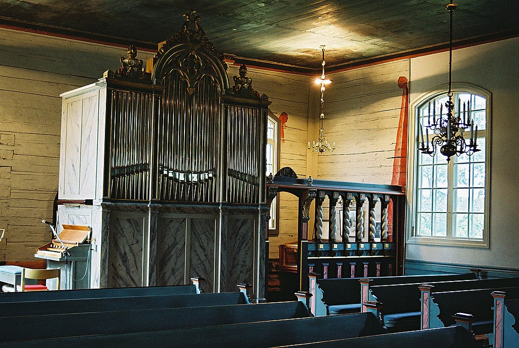 MANUAL (C-f3): 54 TOETSEN Borduna 16′ (B/D), Principal 8′ (B/D), Rörflöjt 8′, Salicional 8′, Oktava 4′, Octava 2′.
