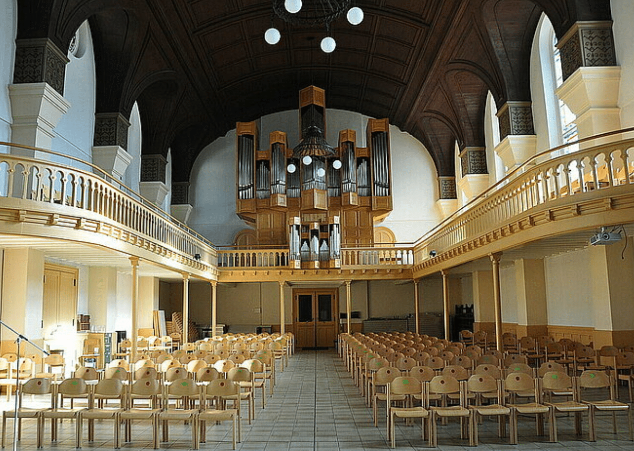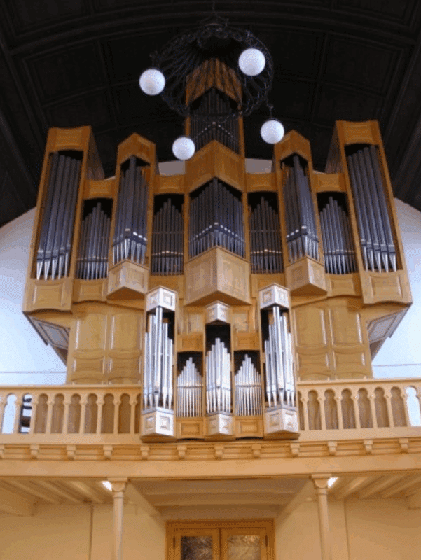 GRAND ORGUE (C – g3) 56 TOETSEN: Bourdon 16′, Montre 8′, Gambe 8′, Bourdon 8′, Prestant 4′, Gemshorn 4′, Quinte Principale 2 2/3′, Doublette 2′, Fourniture 3 rangs (1 1/3′).
