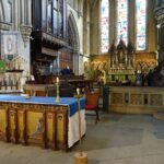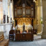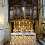 GREAT ORGAN (C – c4) 61 TOETSEN: Open Diapason I 8′, Open Diapason II 8′, Gedact 8′, Principal 4′, Harmonic Flute 4′, Twelfth 2 2/3′, Fifteenth 2′, Furniture IV ranks, Tromba 8′ – transmissie van Choir.