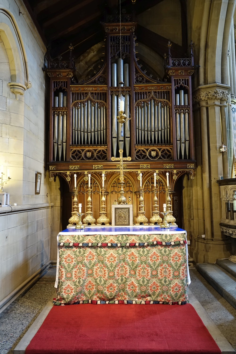 Abbott & Smith bouwde in 1938 een nieuw pneumatisch kegelladen-orgel met 40 (38) stemmen, 3 manualen en een vrij pedaal voor de All Souls’ Church (Blackman Lane) in Leeds (Yorkshire) UK. Wordsworth & Company Wood restaureerde het instrument in 1976. Daarbij werd de tractuur elektrisch gemaakt. John T. Jackson leverde in 1997 nieuw pijpwerk voor de Fourniture. Van dit registers waren diverse pijpen op onverklaarbare wijze verdwenen. Het pedaalklavier is radiaal concaaf.