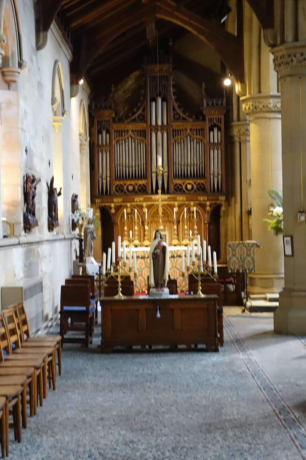 SWELL ORGAN (C – c4) 61 TOETSEN: Geigen Principal 8′, Rohr Flute 8′, Violoncello 8′, Voix Celeste 8′, Gemshorn 4′, Wald Flute 4′, Doublette 2′, Sesquialtera II ranks, Mixture III ranks, Contra Fagotto 16′, Oboe 8′, Horn 8′, Clarion 4′, Tremulant, Tremulant for Reeds only.