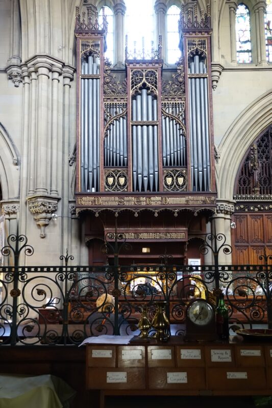 CHOIR ORGAN (C – c4) 61 TOETSEN: Hohl Flute 8′, Viol d’Orchestre 8′, Dulciana 8′, Flute 4′, Nazard 2 2/3′, Piccolo 2′, Clarinet 8′, Tromba 8′, Tremulant.