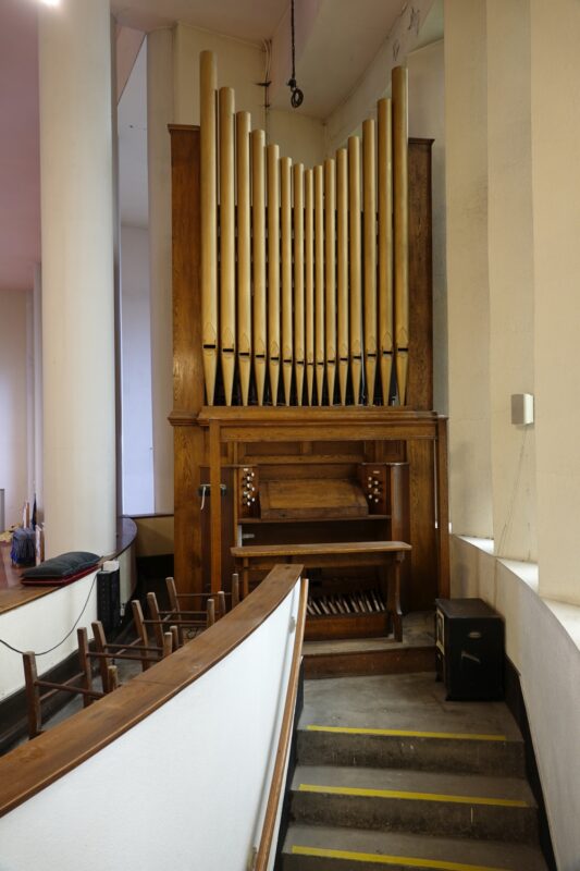 SWELL (C – a3) 58 TOETSEN (IN ZWELKAST): Lieblich Gedact 8′, Viola 8′, Celeste 8′, Gemshorn 4′, Oboe 8′.