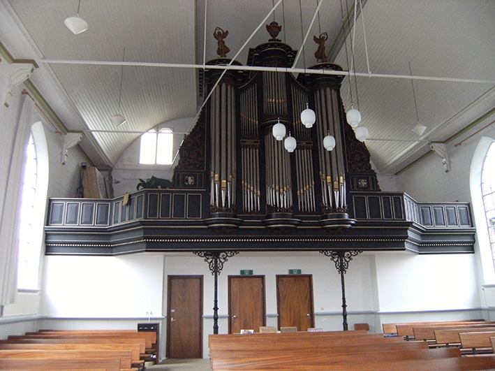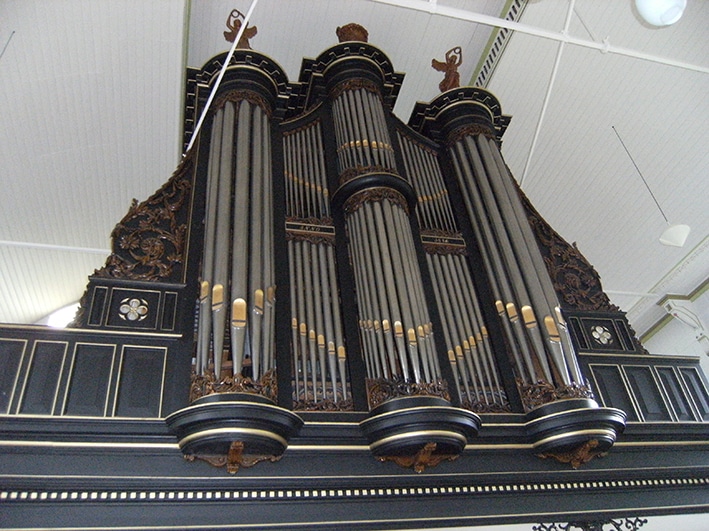 Hoofdwerk: C – f3 Bourdon 16′, Prestant 8′ – 1668/1840, Holpijp 8′, Octaaf 4′, Fluit 4′ – gereserveerd, Quint 3′, Octaaf 2′, Cornet III sterk (discant), Mixtuur III sterk, Trompet 8′ (gedeeld).
