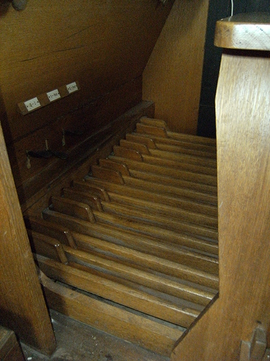 Pedaal: C – d1 Subbas 16′ – transmissie, Octaafbas 8′ – gereserveerd.
