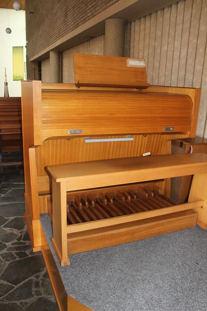 Nevenwerk: Tolkaan 8′, Holpijp 8′, Fluit 4′, Nasard 3′, Sifflet 2′, Sesquialter II sterk (vanaf c°), Dulciaan 8′, Tremulant.