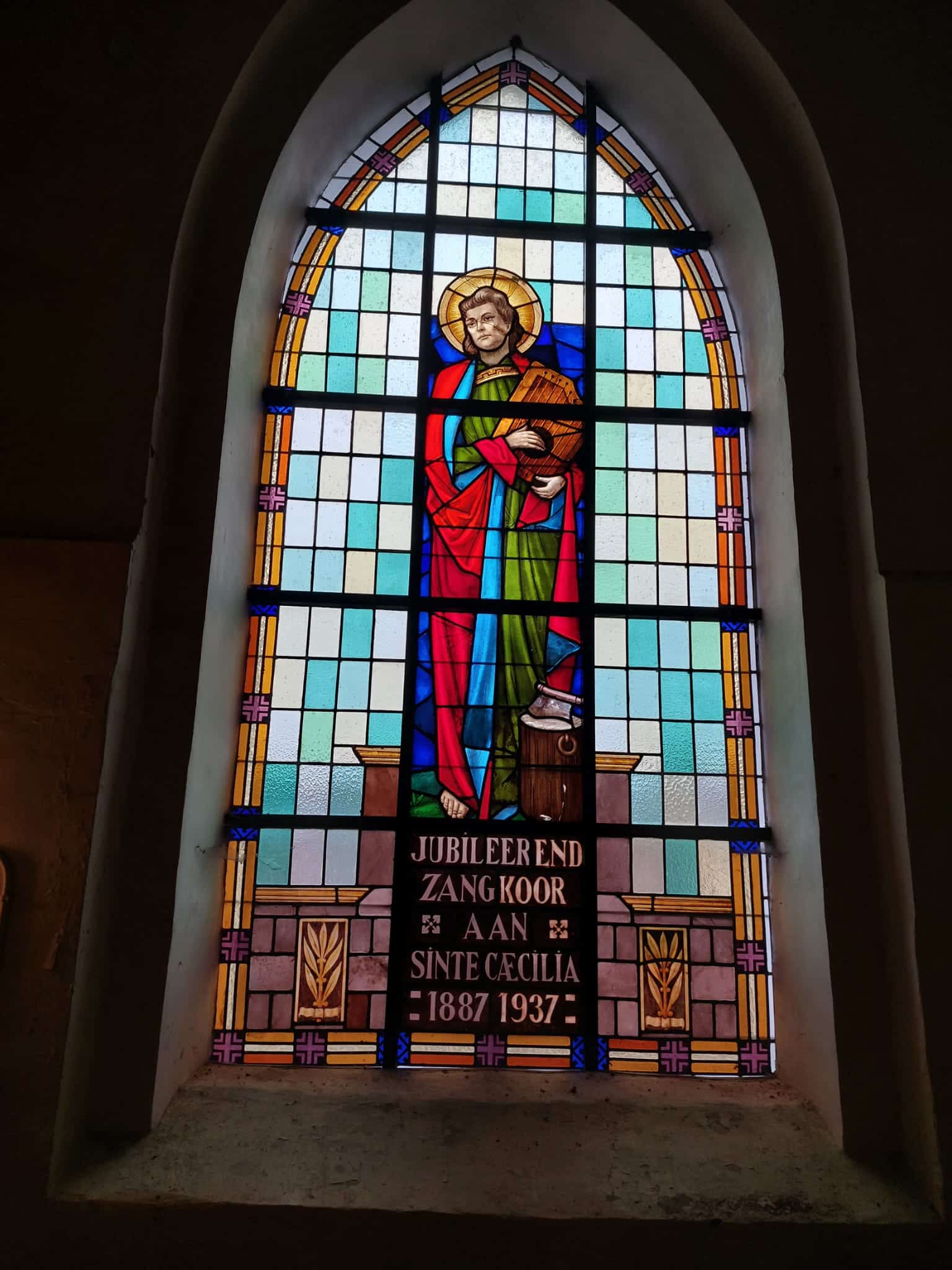 Hoofdwerk [bovenmanuaal] manuaal II: Prestant 8 , Gedekt 8 , Prestant 4 , Spits fluit 4 . Nasard 2 2/3 , Doublette 2 , Mixtuur 4 – 5 r. ,Trompet 8 bas/ diskant.