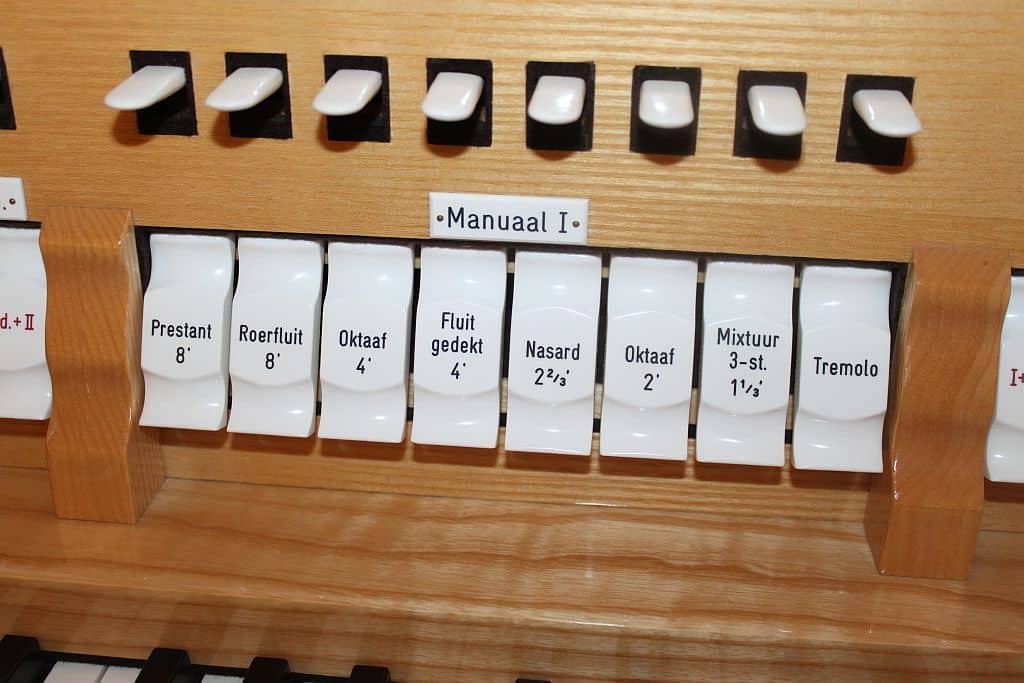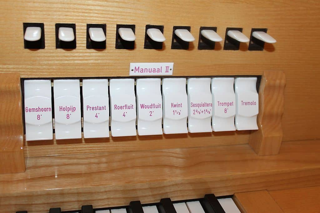 Manuaal II: C – g3 Gemshoorn 8′, Holpijp 8′, Prestant 4′, Roerfluit 4′, Woudfluit 2′, Kwint 1 1/3′, Sesquialter 2 2/3′ + 1 3/5′, Trompet 8′, Tremolo.